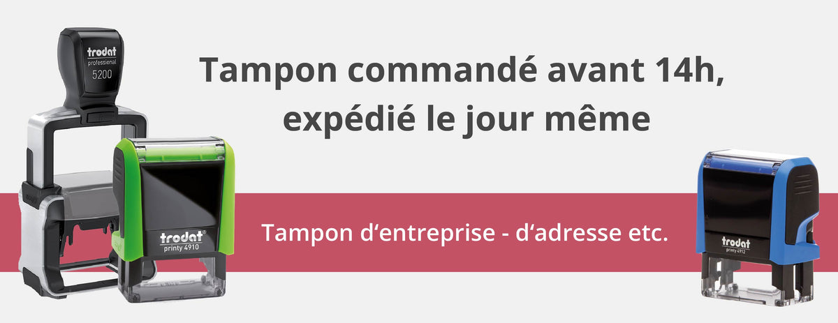 Nous fabriquons votre tampon encreur en 24 heures et vous l'envoyons directement - sur demande, par envoi express. Vous recevrez ainsi votre tampon personnalisé sans attendre longtemps.