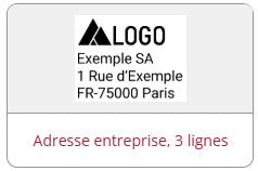 Selon l'utilisation, le tampon peut être minimaliste (uniquement le nom de l'entreprise et l'adresse) ou complet (y compris le numéro d'identification fiscale, les coordonnées bancaires, etc. Un logo d'entreprise assure une présentation professionnelle!